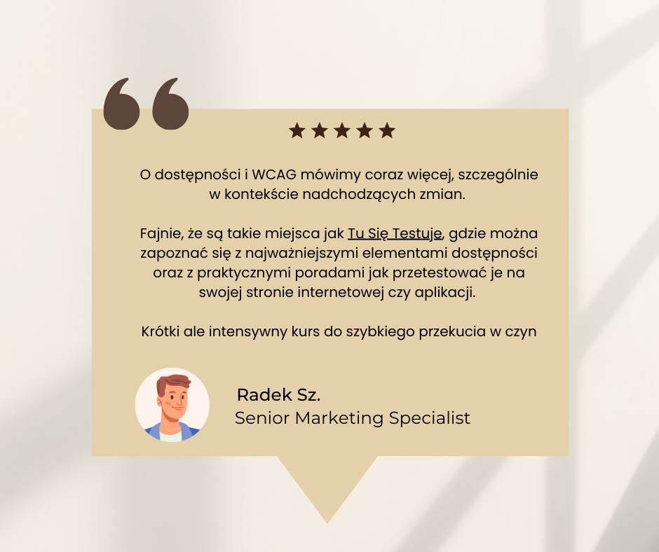 Egzamin IAAP CPACC (Certified Professional in Accessibility Core Competencies) to międzynarodowy standard w zakresie dostępności. Niestety, dostępne materiały są rozproszone i często wymagają zaawansowanej znajomości angielskiego. Dlatego stworzyłam kurs, który uporządkuje całą wiedzę w jednym miejscu!